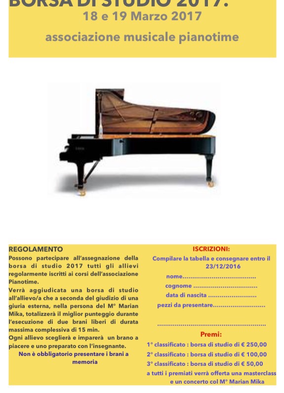 Come ogni anno assegno tre borse di studio agli allievi che maggiormente si danno da fare e producono buoni risultati o semplicemente intenzioni virtuose . Quest’anno ci sarà una giuria esterna che ascolterà e darà un suo giudizio come persona esperta e di grande esperienza. Non sottovalutiamo questa iniziativa,perché sarà abbinata a due giorni di grande musica e di opportunità, non solo per i primi tre ma per tutti i volenterosi e curiosi di imparare e migliorare.