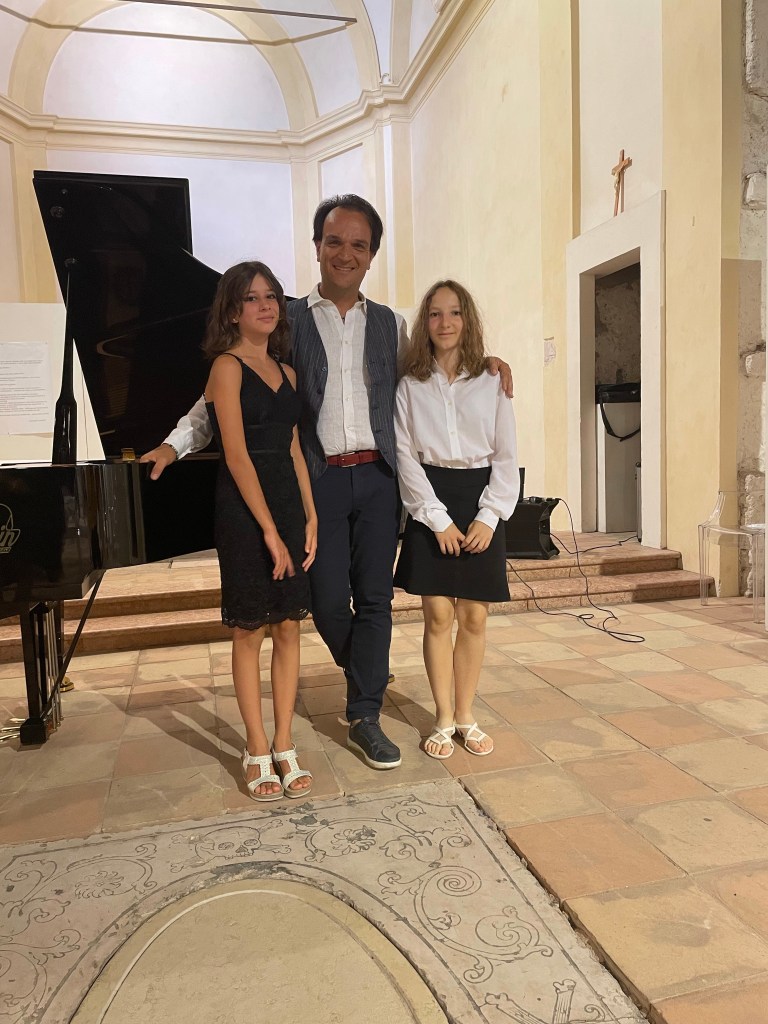 Dopo 8 giorni di permanenza a Torri del Benaco questa sera abbiamo chiuso in grande una settimana di musica. Per me e i miei ragazzi è stata un esperienza che ci porteremo nel cuore, abbiamo arricchito il paesaggio gia splendido in se, con la musica, tra lezioni e concerti ogni giorno dalle 9 alle 22,30 per il paese si sentiva il pianoforte suonare, in sei abbiamo fatto suonare i pianoforti messi a nostro disposizione da Ferrarin pianoforti di Verona. Ogni concerto è stato seguito sempre da tanto pubblico, mai viste così tante persone in tanti anni che suoniamo in vari posti in Italia. Abbiamo avuto l’invito per ritornare, ma anche di andare a Berlino per uno scambio musicale con un altra scuola. È stato bello essere fermati per strada e sentirsi dire che ieri sera è stato emozionante. Ringrazio i miei ragazzi, i genitori per la fiducia che mi hanno dato, i miei maestri che mi hanno formato….. mio papà che fino a pochi giorni fa mi vedeva tornare da questi corsi e non sapeva di tutto questo, ora da lassù l’ho sentito vicino e mi ha aiutato ad emozionarmi con le note dei brani che gli piacevano e in questi concerti li ho portati anche per lui…. Grazie a tutti e arrivederci al prossimo anno ma forse torniamo prima… ho gia delle idee in testa .
