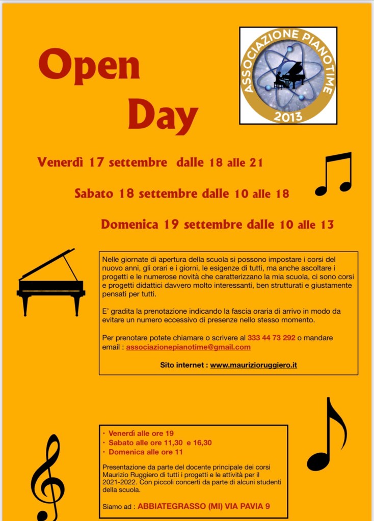 Open Day 17/18/19 settembre Posted on settembre 11, 2021 by maurizioruggiero Chi ben inizia bene pianifica…. Allora vi aspetto per conoscerci, ritrovarci e ripartire a mille 😀🎵🎵🎵 CondividiCondivisione Condividi su Facebook (Si apre in una nuova finestra) Facebook Condividi su WhatsApp (Si apre in una nuova finestra) WhatsApp Share on LinkedIn (Si apre in una nuova finestra) LinkedIn Email a link to a friend (Si apre in una nuova finestra) E-mail Mi piace Caricamento... Correlati