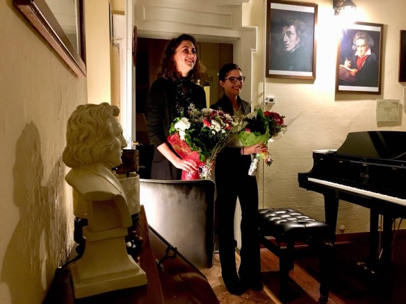 Abbiamo assistito sabato 24 marzo al primo concerto della stagione 2018, interpretato da Arianna Stabile e Giulia Grazzini, nella sala dei concerti della nostra Associazione Pianotime. Ringrazio i numerosi spettatori per la loro sentita presenza. Le giovani pianiste si sono espresse interpretando brani di rilievo nell’ambito concertistico, dando prova della loro maturità, ricerca stilistica ed espressiva, trasmettendoci profondi momenti di bella musica. Credo che ognuno di noi abbia vissuto un’ora speciale e di buona energia. Complimenti a loro e un augurio di crescere sempre con la musica al loro fianco…. le sta proprio bene.