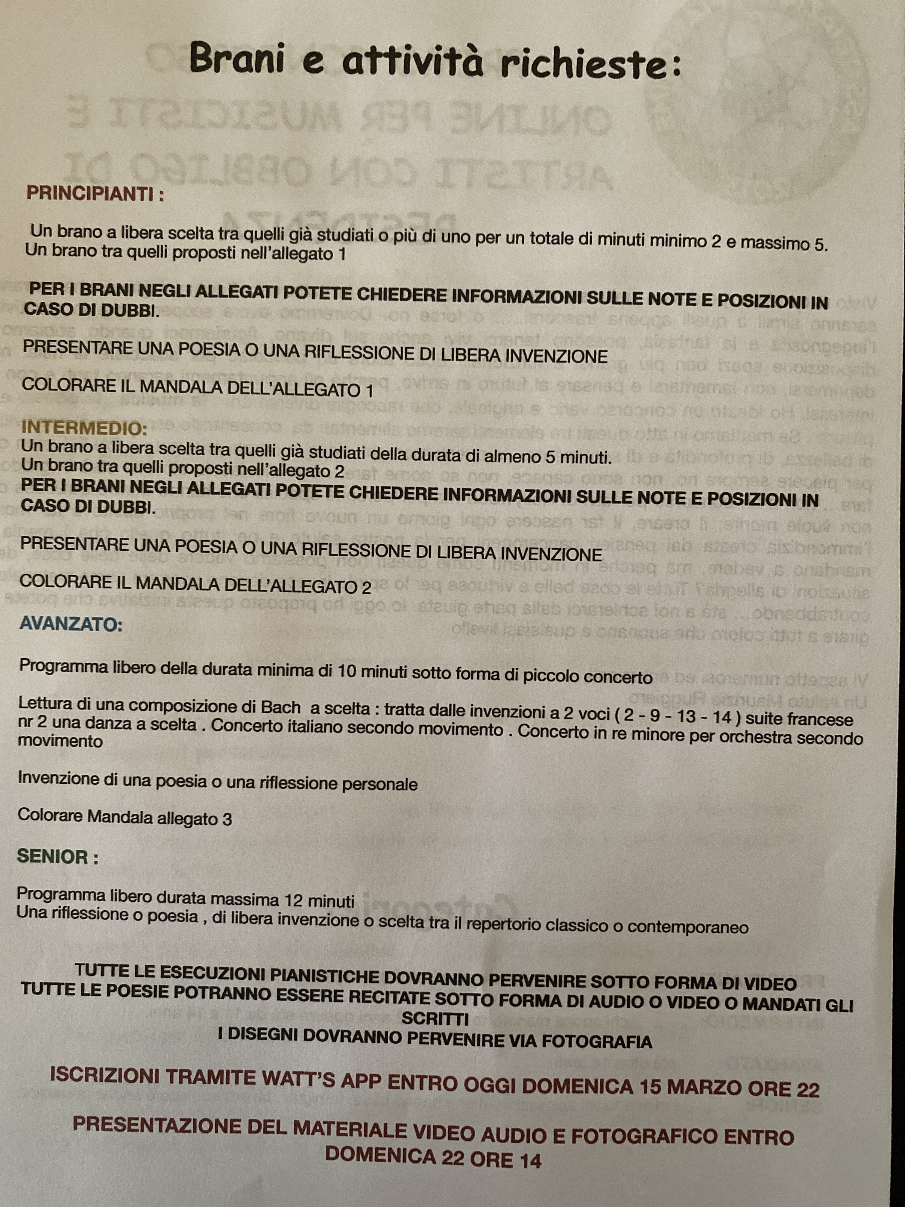 Musica alle 18 ( ogni allievo può mandare un pezzettino registrato e io lo pubblicherò da domani sulla mia pagina Facebook per non tempestarvi di messaggi)
